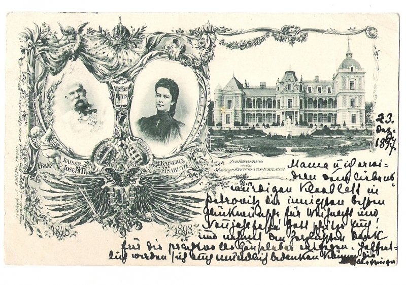 Císařovna Elisabeth a František Joseph, v pozadí jejich palác