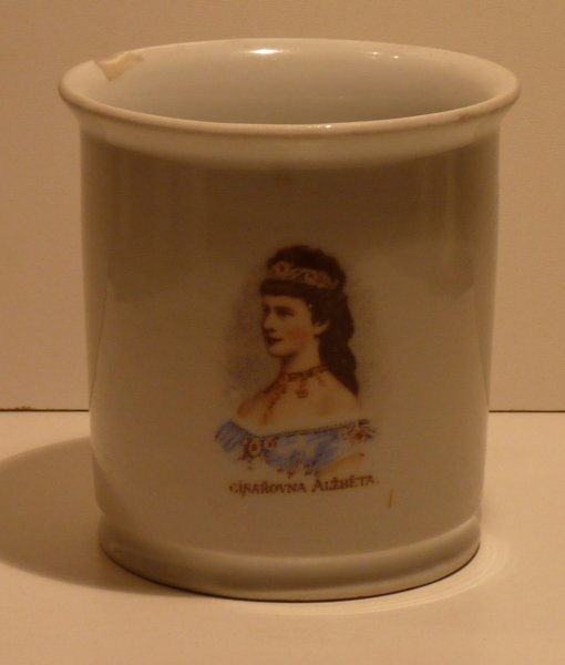 Císařovna Sisi v barevném zpracování na bílém hrnečku