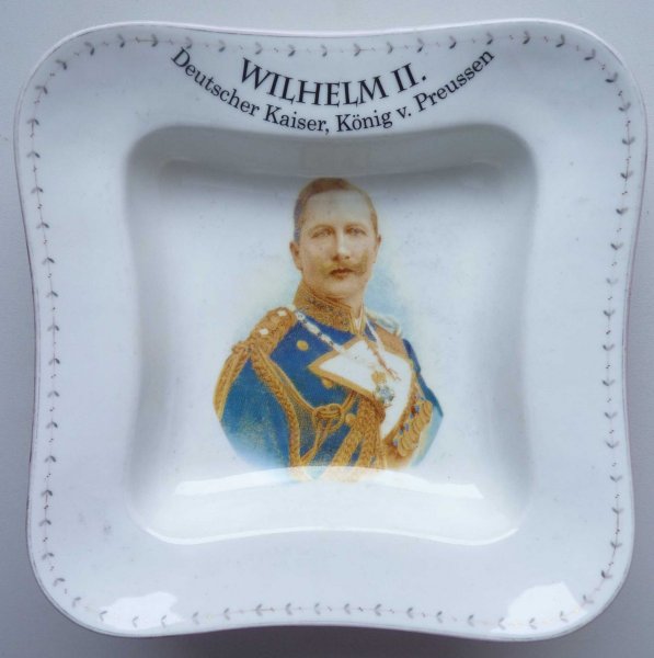 Čtyřhranný talíř s portrétem německého císaře Wilhema II. /vzácnost výskytu tohoto typu talíře je 1:100 / proto mimořádné RR , vitrínová zachovalost