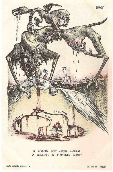 Unikátní - neúplný soubor italských karikatur na krutosti císaře Wilhelma a Franz Josefa v Itálii - Danza Macabra -RRR!