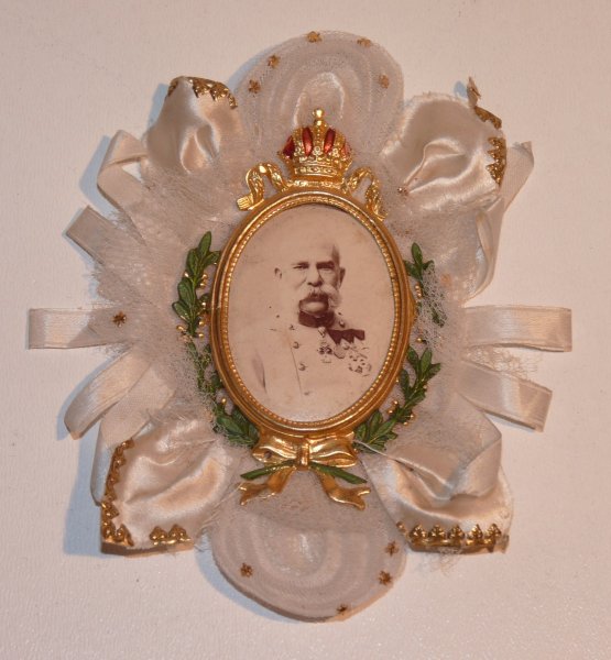 Dekorační ozdoba na šerpu s portrétem císaře Františka Josefa