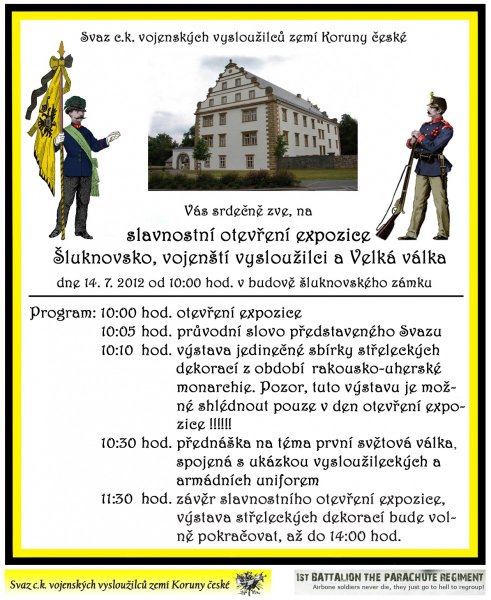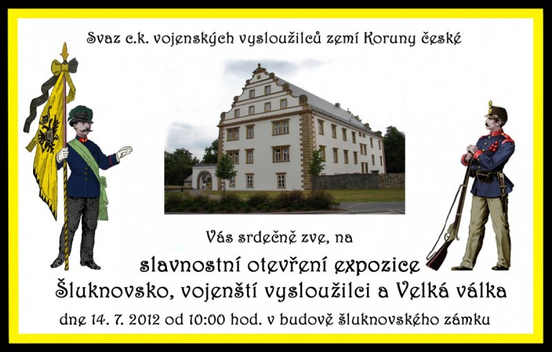 Museum Franz Josefa Vás všechny srdečne zve na otevření nové expozice Svazu vojenských vysloužilců ve Šlukmově 14.7. 2012 . Pozvánka v příloze obrázku. Doporučuji. Správce musea