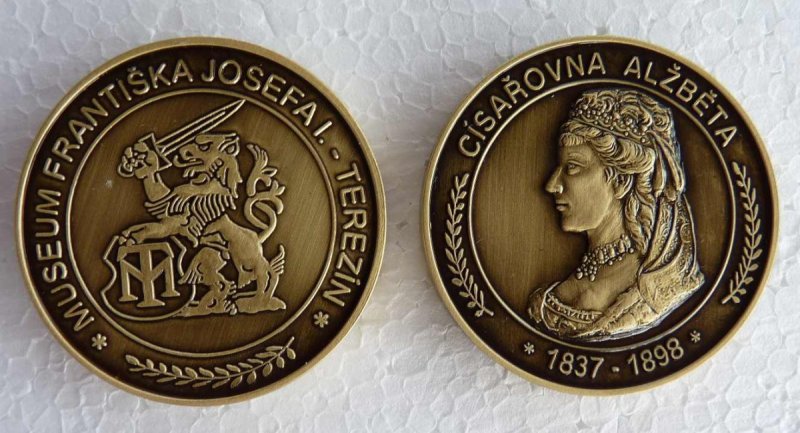 Další historická událost v tom světovém dění(nadneseně řečeno). Máne další medaili ,již třetí ...... Alžběta a erb Terezína . Je 5 cm v průměru , 80 gramů a 6 mm silný střížek , mosaz / bude se razit i limitovaně nízký počet stříbrných medailí - na objednávku/.Dá se říci - je to mimořádnost v medailovém světě.