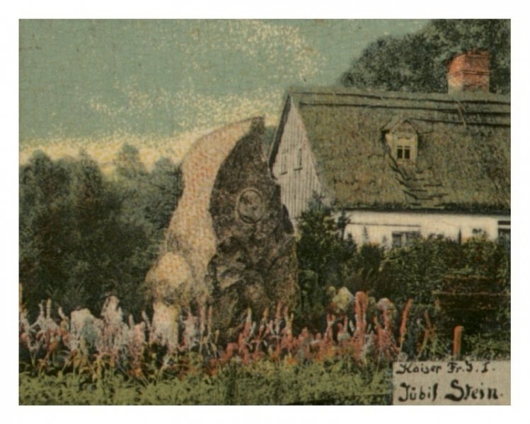 Na pohlednici, která byla odeslána 17.07.1914 jako pozdrav z Dolní Řasnice, je k vidění tamní pamětní kámen. Na kameni lze rozeznat reliéf a na pohlednici je nápis: "Jubilejní kámen pro Františka Josefa I. Potkal ho ale osud téměř všech pomníků císaře. Byl předělán pro jiného oslavence. Asi je to lepší než úplné zničení.
