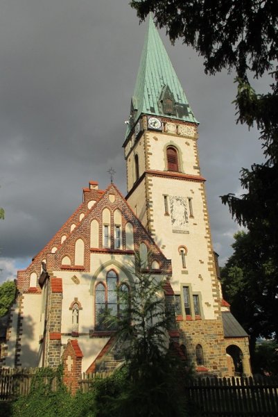 Tato stavba je všeobecně považována za pozoruhodnou památku. Byl postaven v raně gotickém slohu rodinou Razumovských. Silueta je rozčleněna do partií rozličné výšky, vnějšek je řešen různými přístavky a akrýři. Lze zde pozorovat prvky románské, gotické, barokní i lidové. Na západní straně kostela jsou vstupní dveře do podzemní hrobky hrabat Razumovských. Mohutný oltář situovaný i s věží na západní straně kostela je vyřezán ze dřeva v gotickém slohu. Kostel netvoří jen viditelnou dominantu obce, ale je i její nejvzácnější kulturní památkou. Byl vysvěcen v roce 1908.