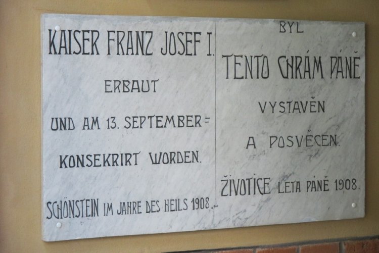 „Kaiser Franz Josef I. erban und am 13. September konsekrirt worden. Schönstein im jahre des heits 1908."