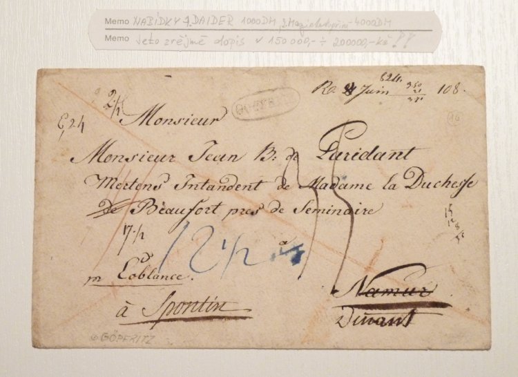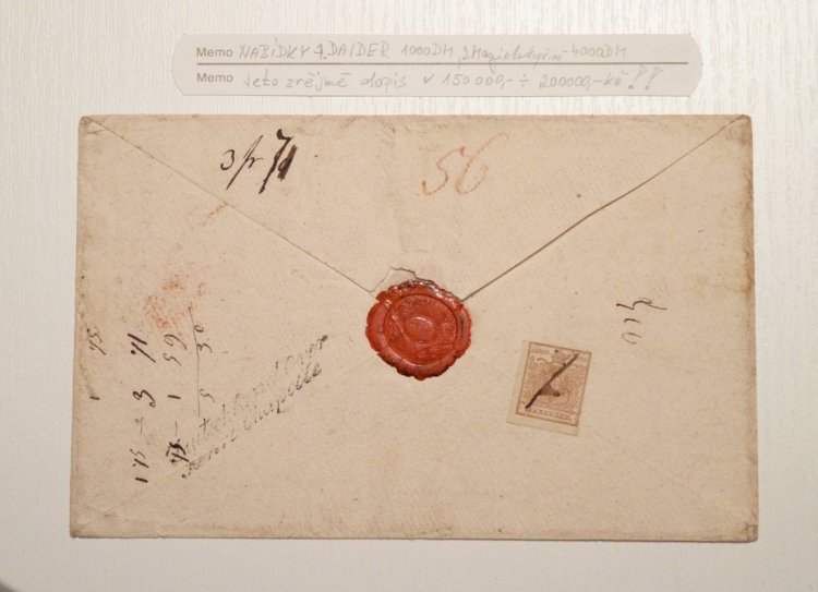Dopis odeslaný do Rakouska v začátku platnosti rakouských známek, zatíženo doplatným s ručním znehodnocením známky, mimořádné