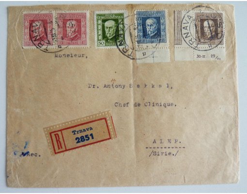 Dopis s mimořádnou frankatůrou známek - T.G.Masaryk