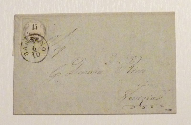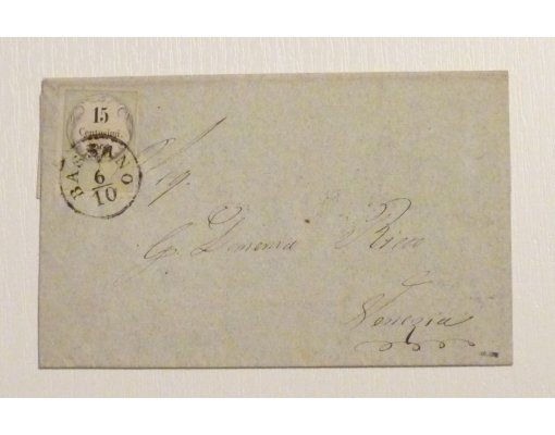 Dopis vyfrankovaný 15 centy, razítko Bassano