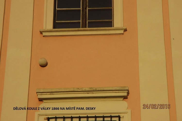 Zachovala se ale dělová koule z bitvy v roce 1866, která je zasazena do omítky fary v místě, kde byla dřív pamětní deska.