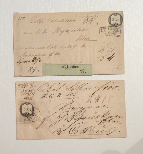 Dva dopisy vyfrankové 5 Kr. kolkem