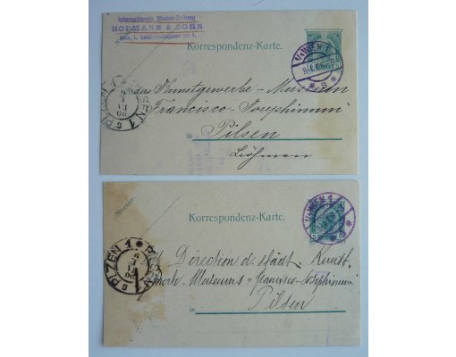 Dvě rakouské celiny - ,, dveřní rám ,, 5 Kreuzer s fialovým razítkem