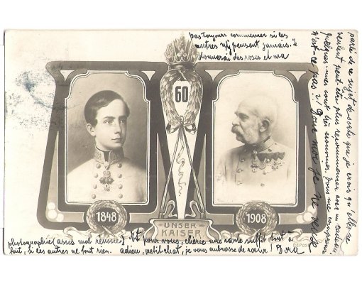 Dvojportrét Franz Josefa I., výtvarně zpracováno do hranatého orámování