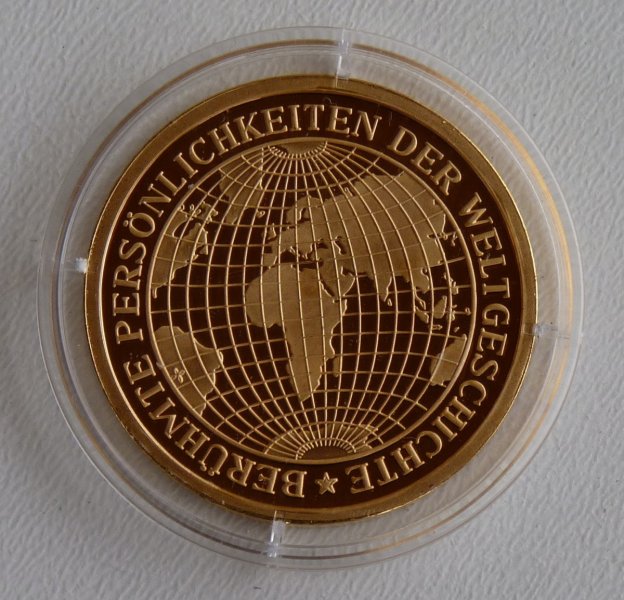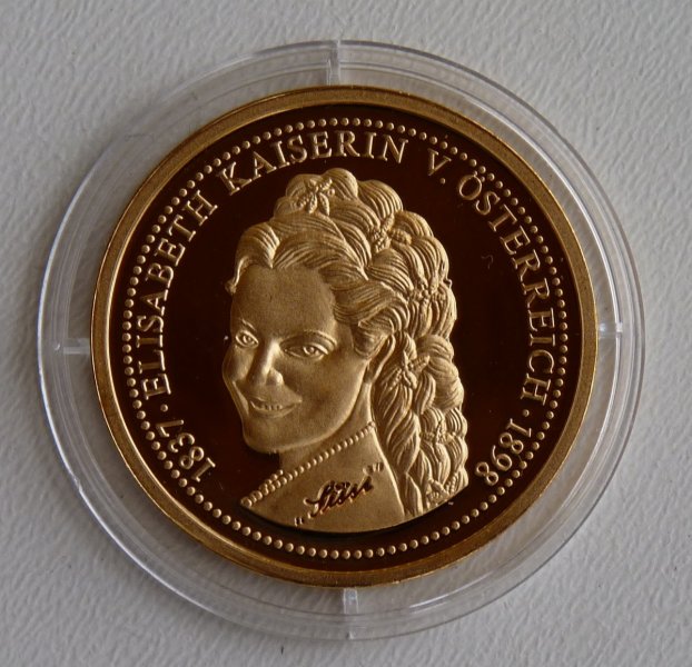 Medaile s vyobrazením císařovny Elisabeth a na druhé straně mapa Světa