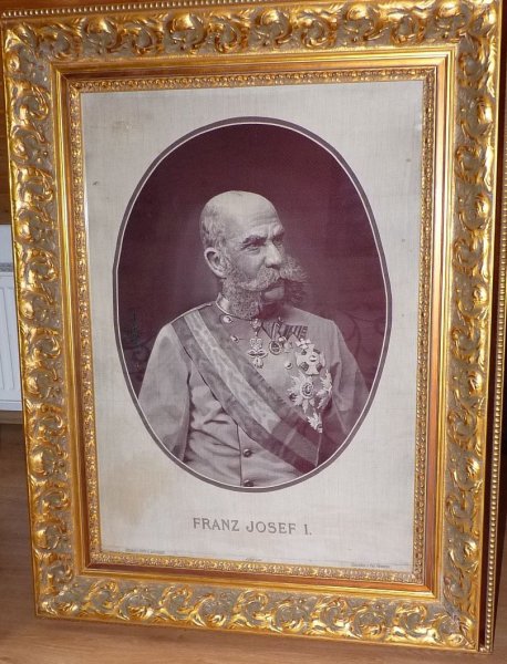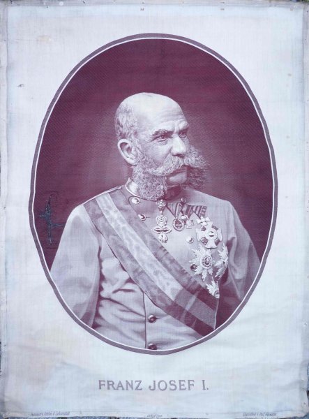 Over 120 years old embroidered image (Weaving - machine) - Franz Josef / silk - one of the best items in the museum ... 1.2 mx 0.9 m / Atelier Lehranstalt, JULIUS LEON, cezeichnet v.Prof. Harwarter