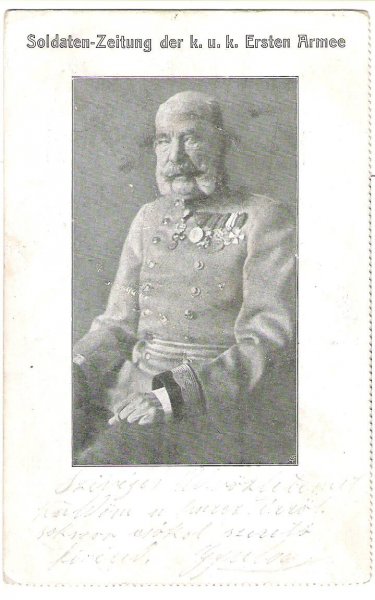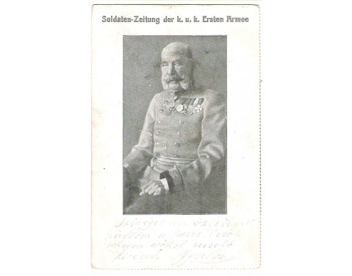 Blind postcard with portrait of emperor Franz Joseph / apparently as part of magazine or newspaper (cardboard)