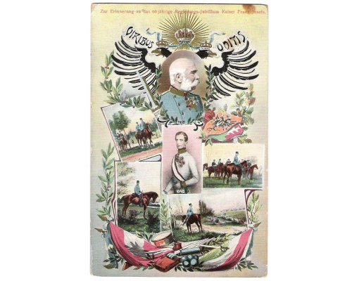 Colored postcard - anniversary , Franz Joseph I. is on the throne for 60...