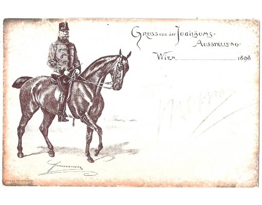 Emperor Franz Joseph on horse , exhibition postcard from Vienna