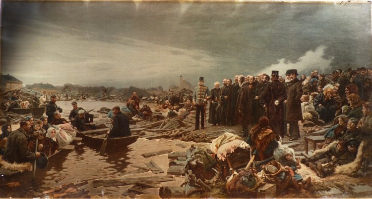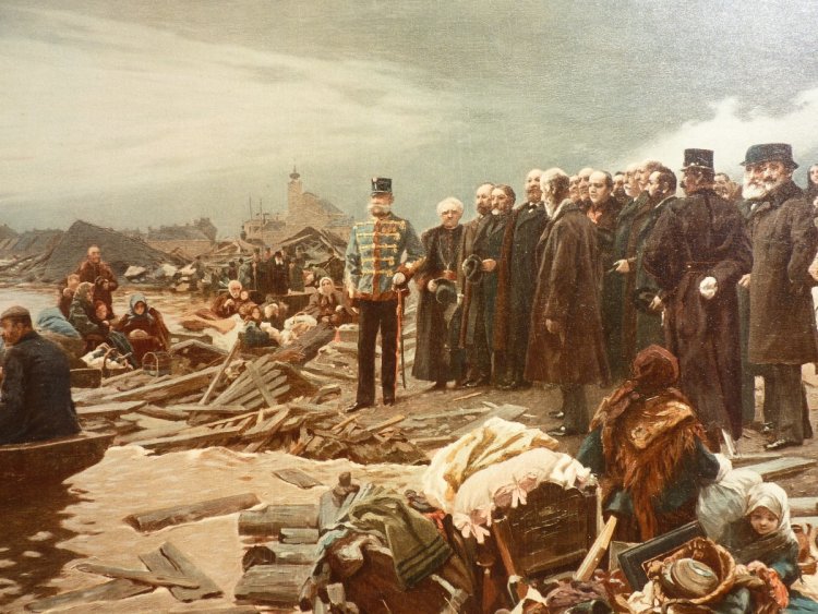 Extraordinary Exhibit - Franz Josef on patrol flooding ... / 1879 - Szegedin?? / Ask where and when ... ?? One of the best paintings in the museum.