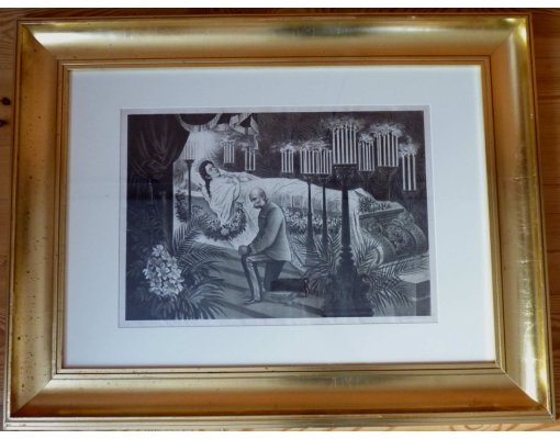 Franz Josef on the death bed Elisabet - gilded frame, extraordinary