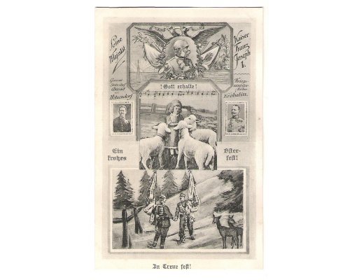 Franz Joseph and generals , soldiers , child with sheeps
