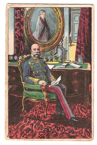 Franz Joseph in workroom , color postcard