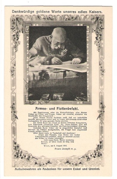 Franz Joseph writing message for his army