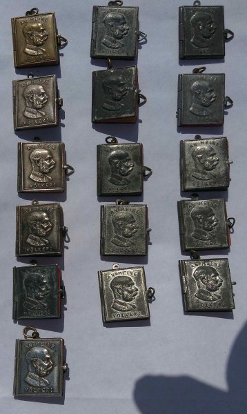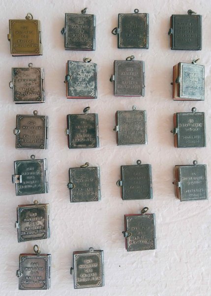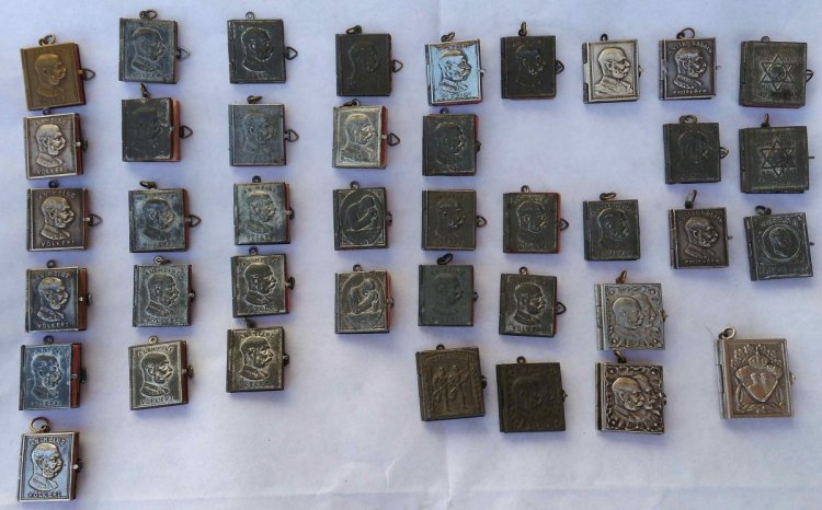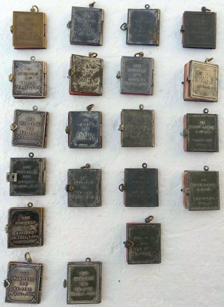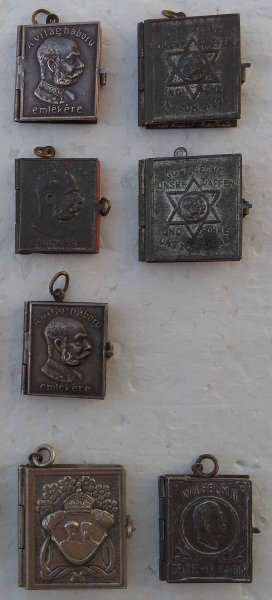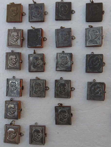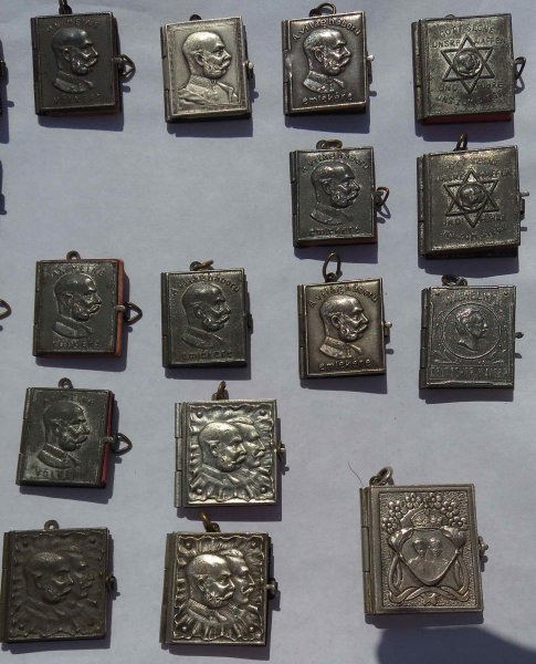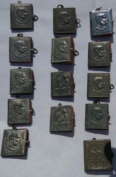 An extraordinary collection of mini books - My peoples. It contains rarity - in Czech, Hungarian. Different variants according to several manufacturers - copper verse, tin version, silver-plated verse. Star of David . Mini book with Emperor Wilhelm, variant with Emperor Charles and generals - in such a UNIQUE.