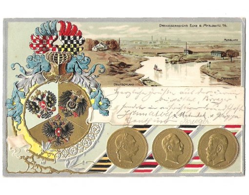 Myslowitz , coins of three emperors and decorated coat of arms