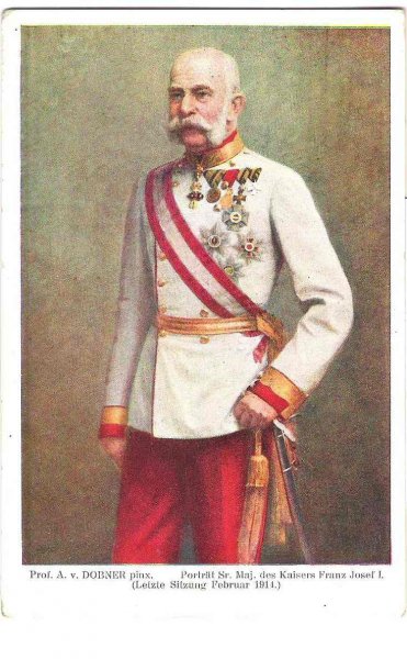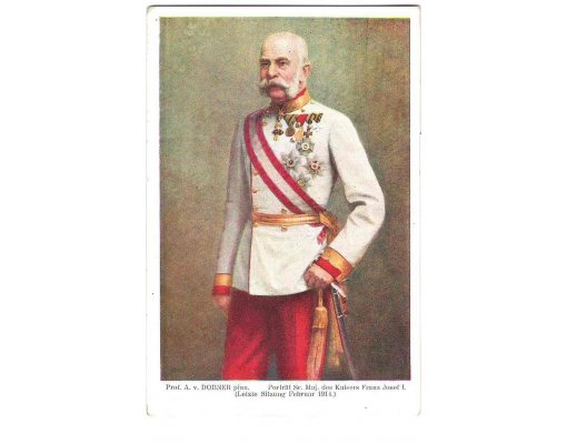Painted postcard - standing emperor Franz Joseph