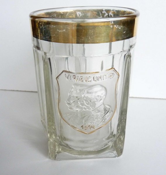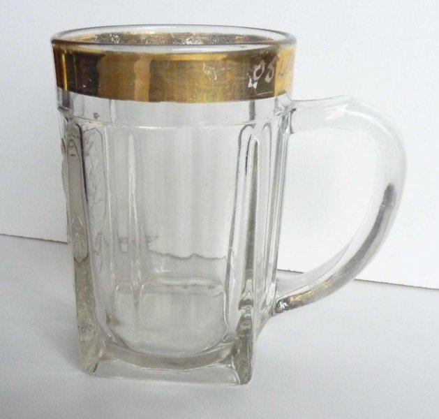 Clear glass mug ( glass ) with portraits of emperor Franz Joseph and Wil...