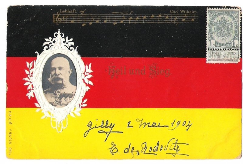 Song on hungarian flag with portrait of Franz Joseph and with stamp