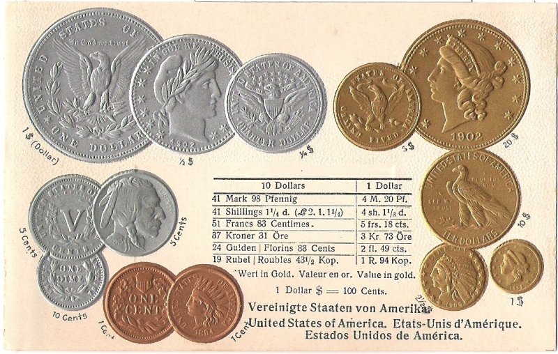 Postcard with coins - USA