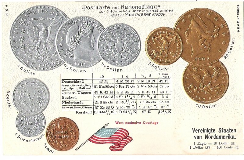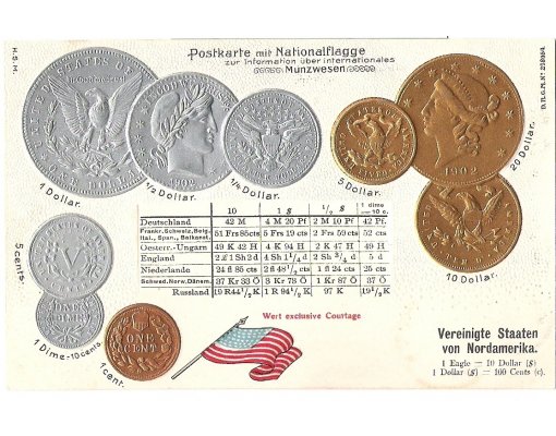 Postcard with coins - USA