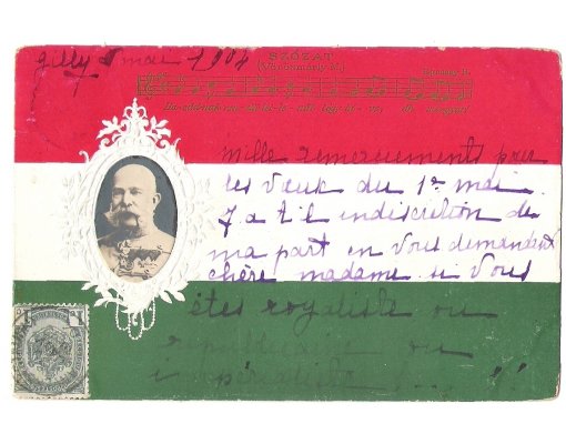 Song on hungarian flag with portrait of Franz Joseph and with stamp