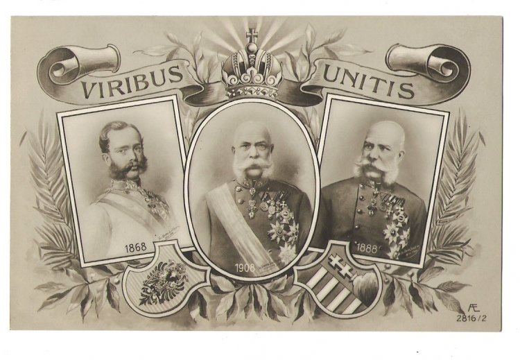 Three portraits of Franz Joseph ( years 1868 ,1888 ,1908 )