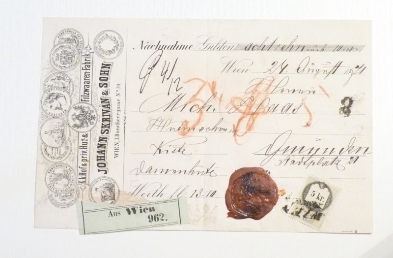 Faktura- dopis, vyfrankovaný 5 Kr. kolkem
