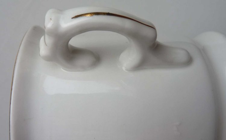 Pozor při nákupu zdánlivě pravých hrníčků . Zde je jeden zvláště vydařený novodobý padělek . Prodejcem delklarováno , že se jedná o starý hrneček přes 80 let ve vitríně u jeho babičky , ale je to falzo . Cena takového hrnečku je tak kolem 50,- kč a né 1000,- kč .Proto pozor při nákupu .