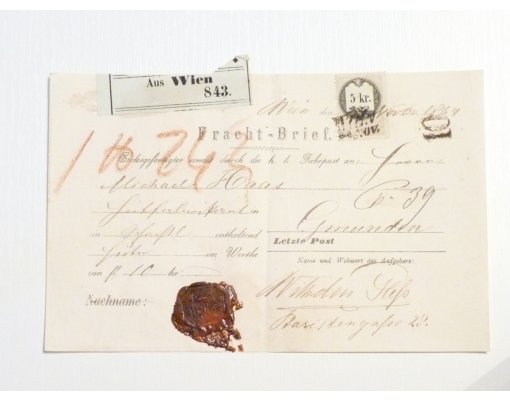 Frachtbrief- vyfrankovaný 5 Kr. kolkem