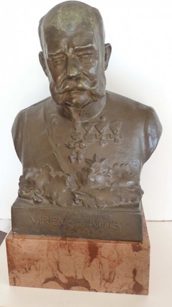 František Josef - bronzová busta na mramorovém podstavci , mimořádný exponát