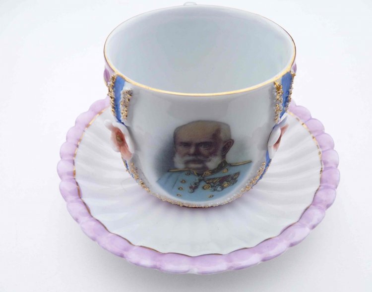 František Josef - hrníček s podšálkem / zřejmě novodobá replika - i tak pěkná práce