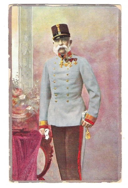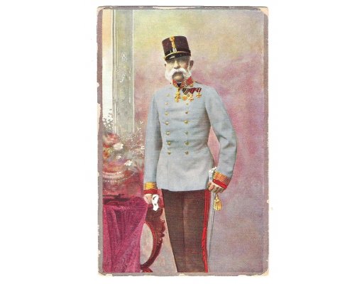 František Josef I., stojící v modré uniformě