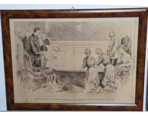 František Josef na smrtelném loži a truchlící rodina