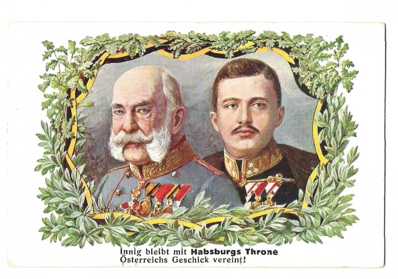 Franz Josef a Carl Franz Josef, portréty v květinovém rámečku