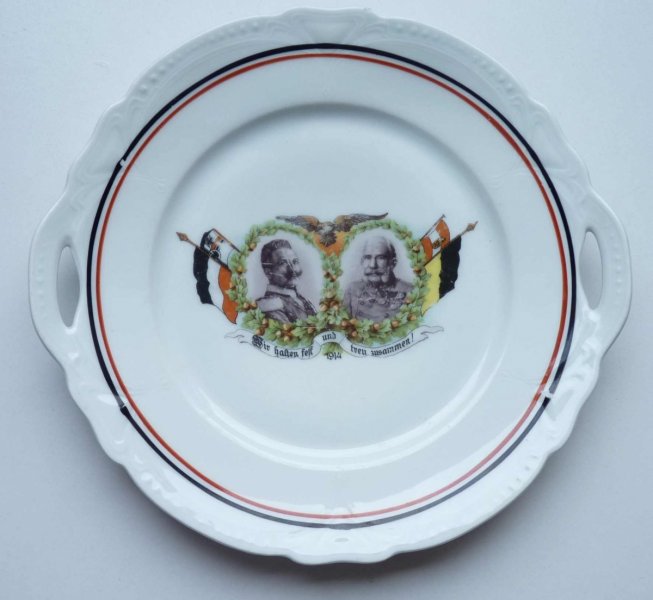 Patriotický talíř na počest spolupráce Rakouska a Německa v 1.světové válce / Franz Josef a Wilhelm , rok 1914