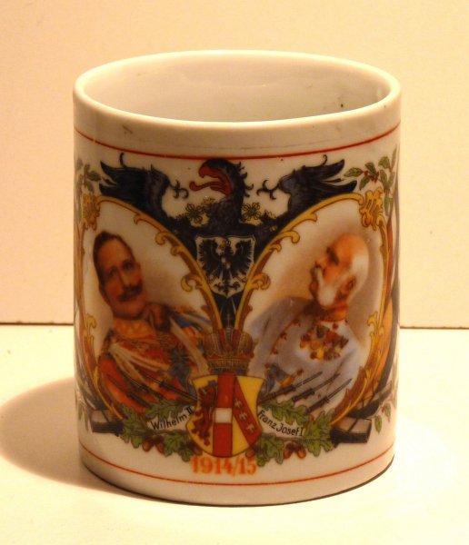 Franz Josef I. a Wilhelm II. s rakouskou orlicí na hrnečku