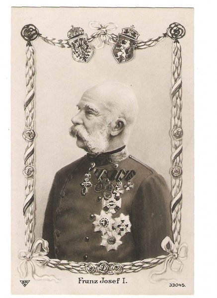 Franz Josef pod rakouským a maďarským státním znakem