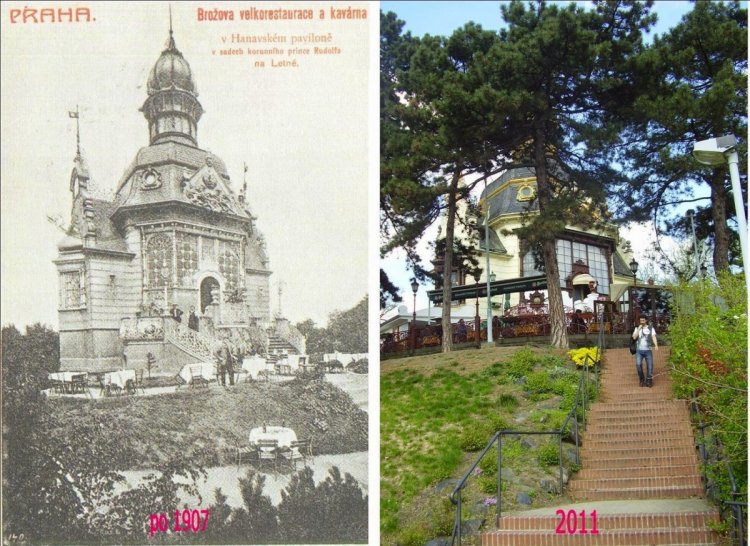Zemská jubilejní výstava trvala od 15. května do 18. října a za tu dobu ji navštívilo téměř 2 a půl milionu lidí. Přibližně deset dní před jejím ukončením navštívil zástupce železáren pražského purkmistra JUDr. Jindřicha Šolce, aby mu předal darovací listinu, podle níž se kníže rozhodl věnovat nejskvostnější pavilon Jubilejní výstavy Praze. Městští radní pak rozhodli o přenesení pavilonu na Letnou a již v polovině prosince roku 1891 našla stavba nové místo i uplatnění. Později v ní byla totiž zřízena restaurace a ta pronajímána příslušnému nájemci. V té době se ovšem pavilon nacházel na katastru Hradčan (čp. 223), dnes jej však najdeme na katastru Holešovice-Bubny (Letenské sady 175). Během let se ale tato půvabná stavba dostala do havarijního stavu. V roce 1967 byl pavilon rozebrán, podle historických fotografií byly zhotoveny nové odlitky a pavilon znovu sestaven. K tak náročné rekonstrukci přispěl snad i připravovaný mezinárodní kongres architektů v Praze i skutečnost, že se ve dvacátých letech o něm pochvalně vyjádřil i slavný francouzský architekt Le Corbusier.