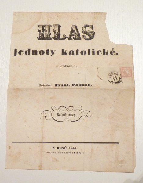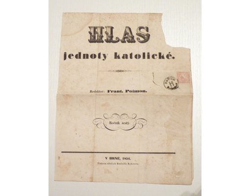 Hlas Jednoty katolické - dofrankováno růžovým Merkurem, razítko Brno
