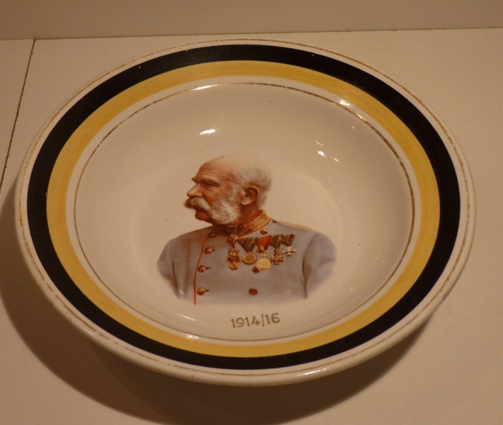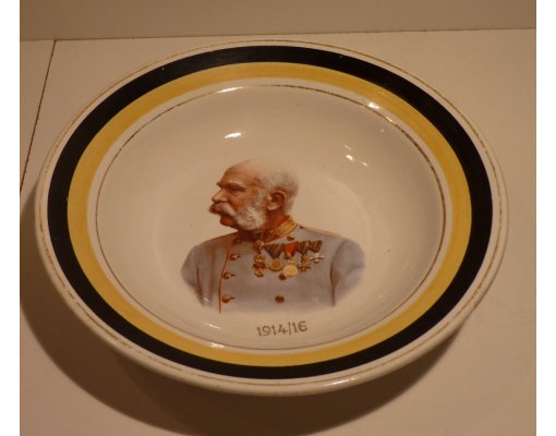 Hluboký talíř s portrétem Franz Josefa I. se žlutým a černým pruhem 1914 - 16
